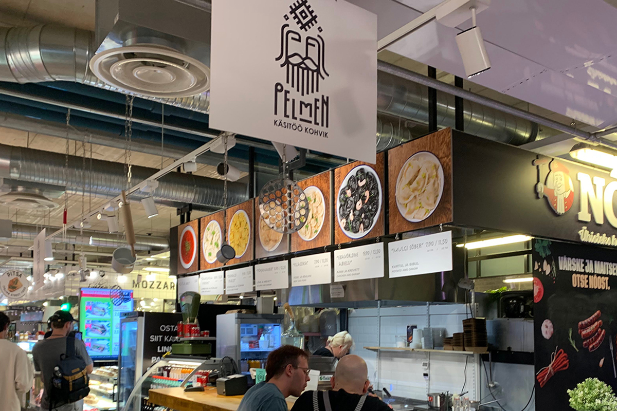 Balti jaama turu toidutänavale on Pelmen üles pannud leti, mille taha mahub viis pukktooli. Seitse suurt fotot annavad teada, mida parajasti pakutakse: üks borš ja kuut sorti pelmeene. Lubatakse, et pelmeenid on valmistatud käsitsi ja 90 protsenti kohalikust toorainest.