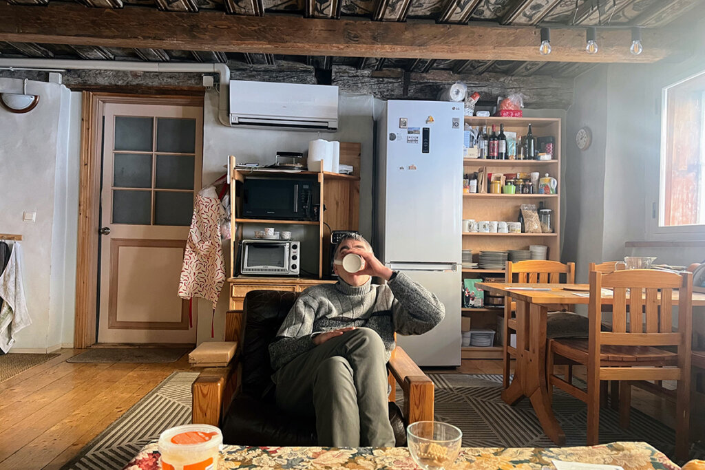 Kui jälgida, kuidas sale ja pikakasvuline Alain tegutseb oma kodu elutoas ja köögis, joonistub selge erinevus stereotüüpse õgardist õllemaia tüseda mungaga. „Mina joon teed,“ muigab Alain, „ja ma ei ole munk.”